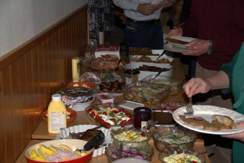 Da lotteriet var overstået, var der igen tid til en seriøs Bernersnak - der var jo gået hele 2 timer uden. Indimellem blev der også anrettet et lækkert Julebord, hvor alle havde bidraget med en ret.
